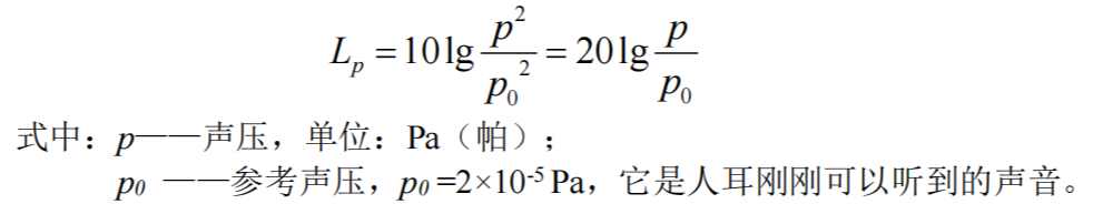 其實I為聲強;I0為參考聲強,一般取I0=10-12 W/m2,這是相應(yīng)參考聲壓級P0=2×10-5 Pa 時的聲強。一般情況下可以認為聲壓級等于聲強級。